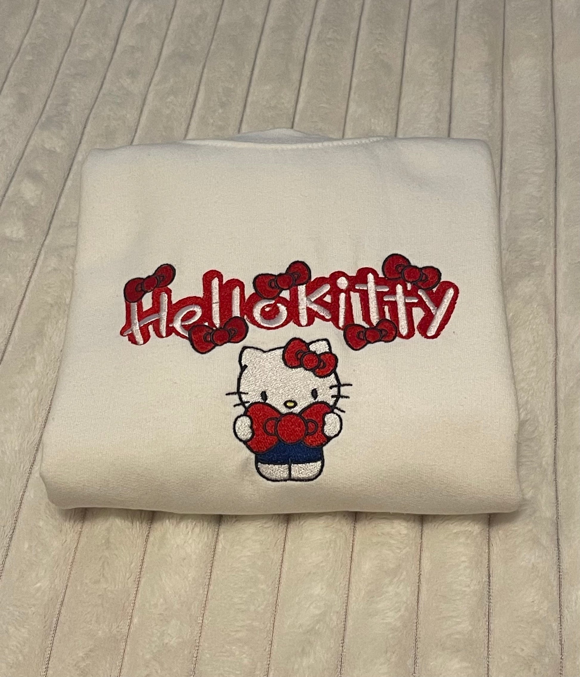 Elevate your casual wardrobe with our Hellokitty sweatshirt. Featuring intricate embroidery and soft, cozy fabric, this sweatshirt is perfect for adding a touch of sweetness to any outfit. Stay warm and stylish with this must-have piece.